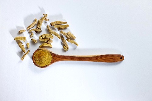كركم في ملعقة خشبية