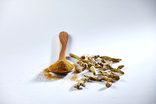 كركم في ملعقتان خشبيتان