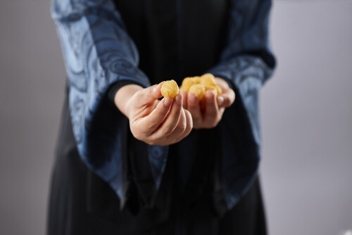 يد تحمل أطعمة متنوعة