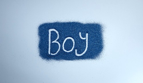 A word written with blue glitter