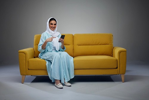 A Saudi woman sitting a beanbag