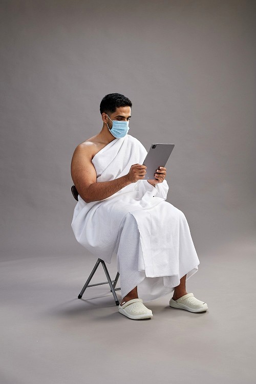 A man wearing Ehram taking selfie