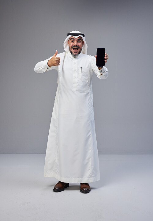 A Saudi man Showing his phone