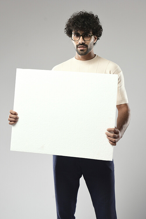 A man posing in a blue background