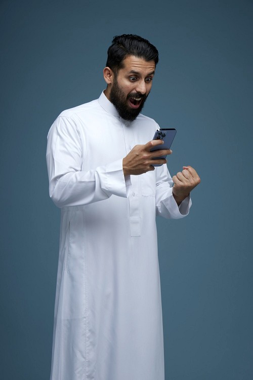 A Saudi man Showing his phone