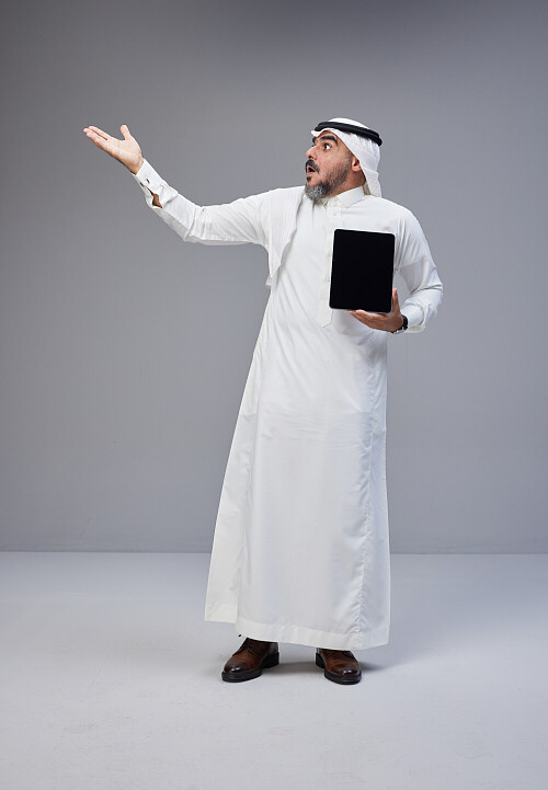 Saudi man working on tablet