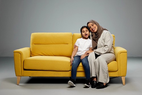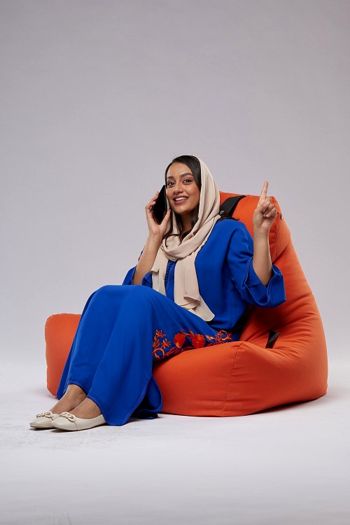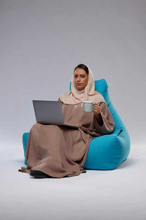 A Saudi woman sitting on a beanbag