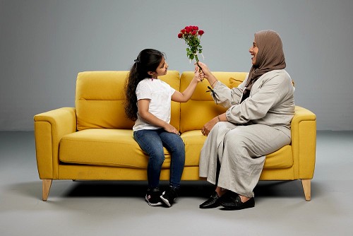A girl giving a gift to her mother