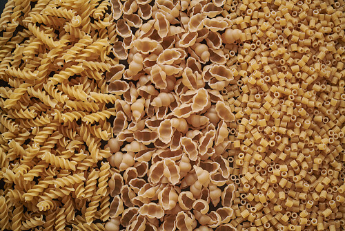 3 types of pasta filling the frame