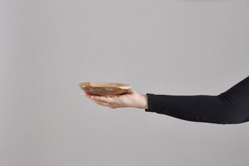 A woman in black abaya holding different pottery essentials in different positions