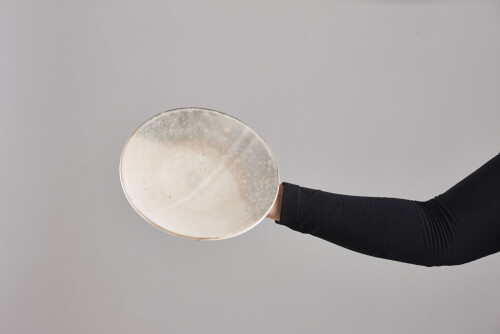 A woman in black abaya holding different pottery essentials in different positions