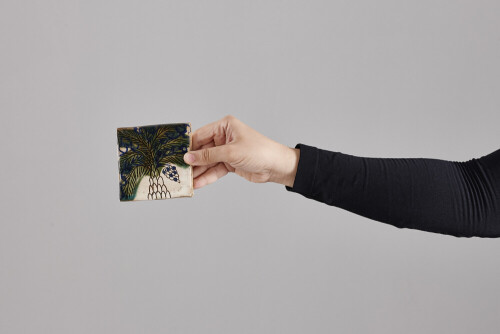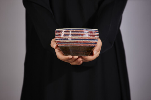 A woman in black abaya holding different pottery essentials in different positions