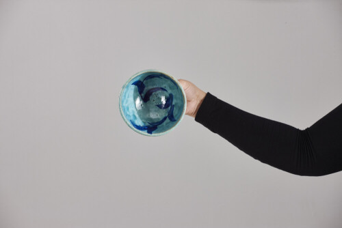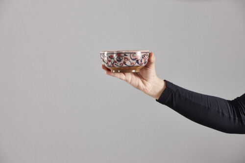 A woman in black abaya holding different pottery essentials in different positions