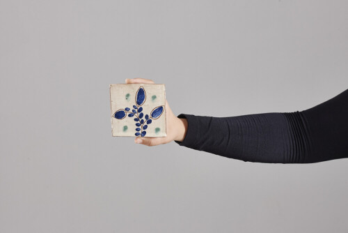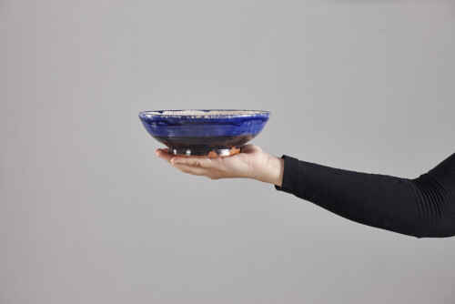 A woman in black abaya holding different pottery essentials in different positions