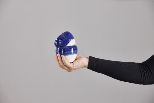 A woman in black abaya holding different pottery essentials in different positions