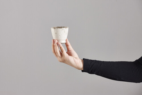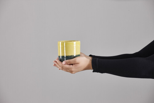 A woman in black abaya holding different pottery essentials in different positions