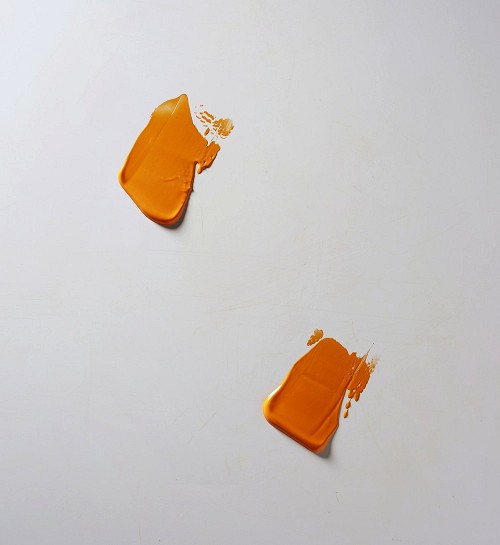 Orange painting knife strokes on white background