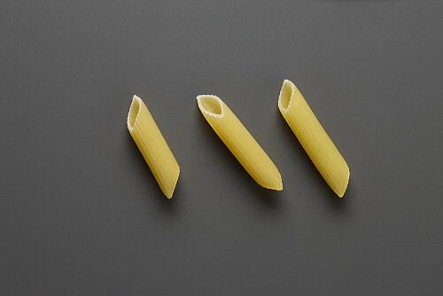 Penne pasta on grey background