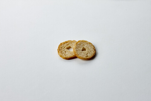 45º Shot of of two assorted Brown Irish Cream, and Brown white Chocolate Caramel macarons on white background