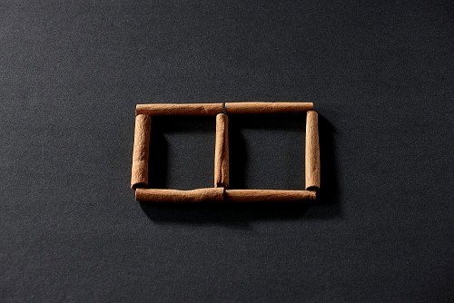 2 squares of cinnamon sticks on black flooring