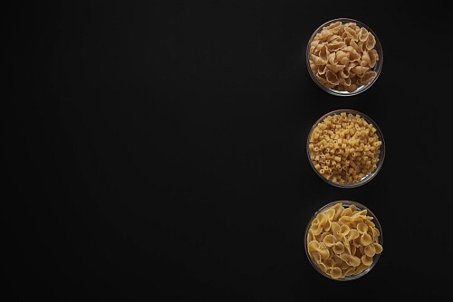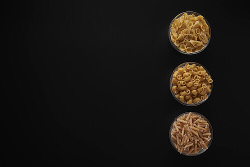 Different Pasta Types In 3 Glass Bowls