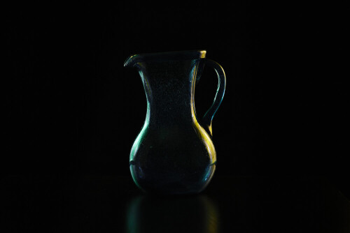 Glassware with rim light in green and yellow against black background
