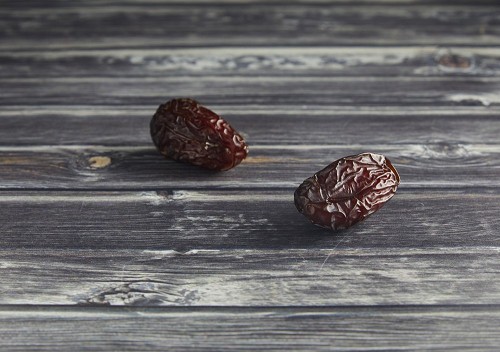 two madjoul dates on a wooden grey background