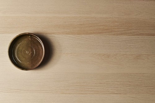 A multicolored pottery oven plate on light wooden background