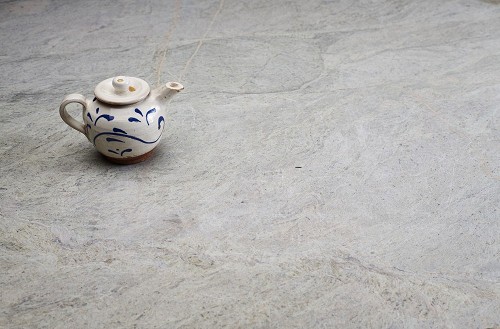 A pottery teapot on grey marble background