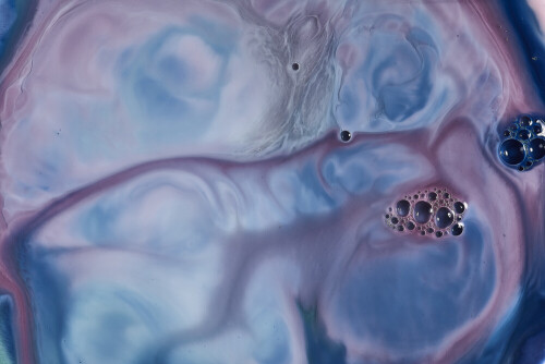 A close-up of abstract swirling patterns in blue, red and white