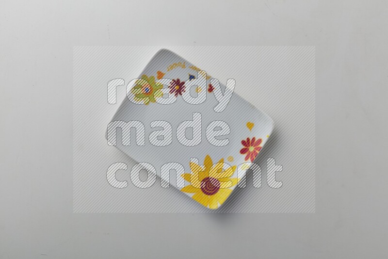 Top-view shot of a colored plate on white background
