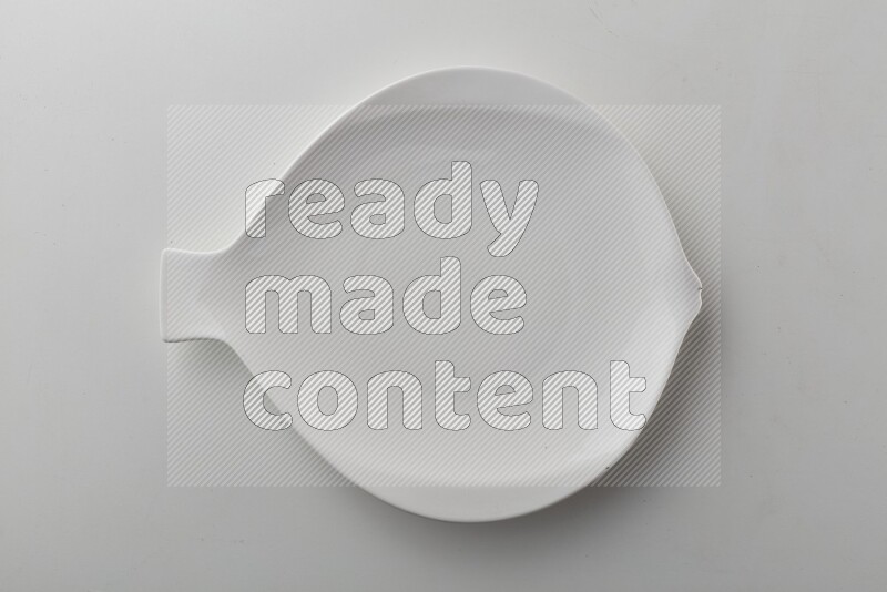 Top-view shot of an irregular white plate on white background