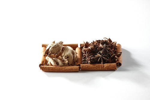 Wooden bowl full of cinnamon powder with a wooden spoon