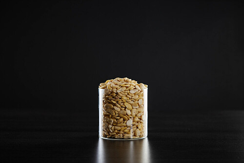 Crushed beans in a glass jar