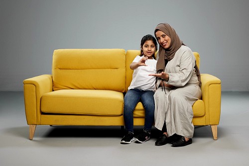 Mom and daughter holding ATM card