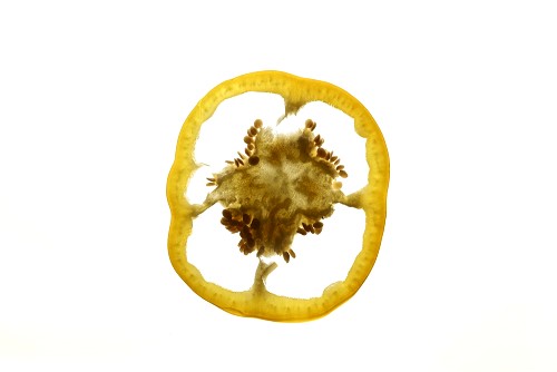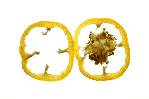 45º Shot of of two assorted Brown Irish Cream, and Brown white Chocolate Caramel macarons on white background